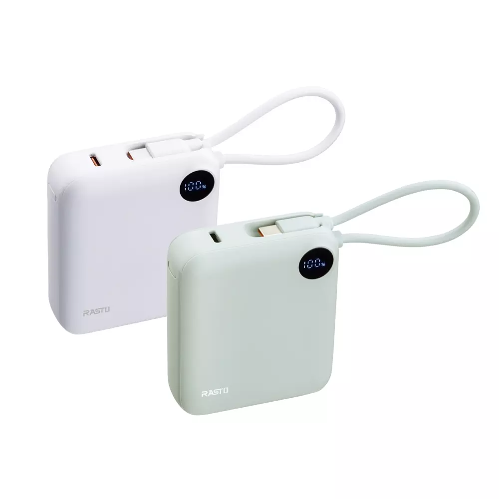 RB55 數顯自帶線二輸出雙向快充行動電源 白