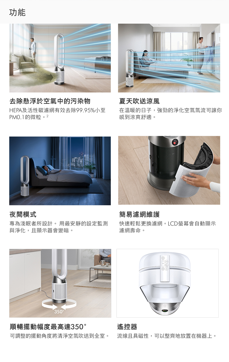 吹送模式風扇模式直接吹送潔淨暖風或涼風;淨化的空氣氣流可讓您夏天涼爽怡人冬日溫暖舒適。