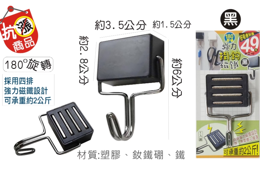巨匠 T7045114-1方形強力磁鐵掛鉤-黑